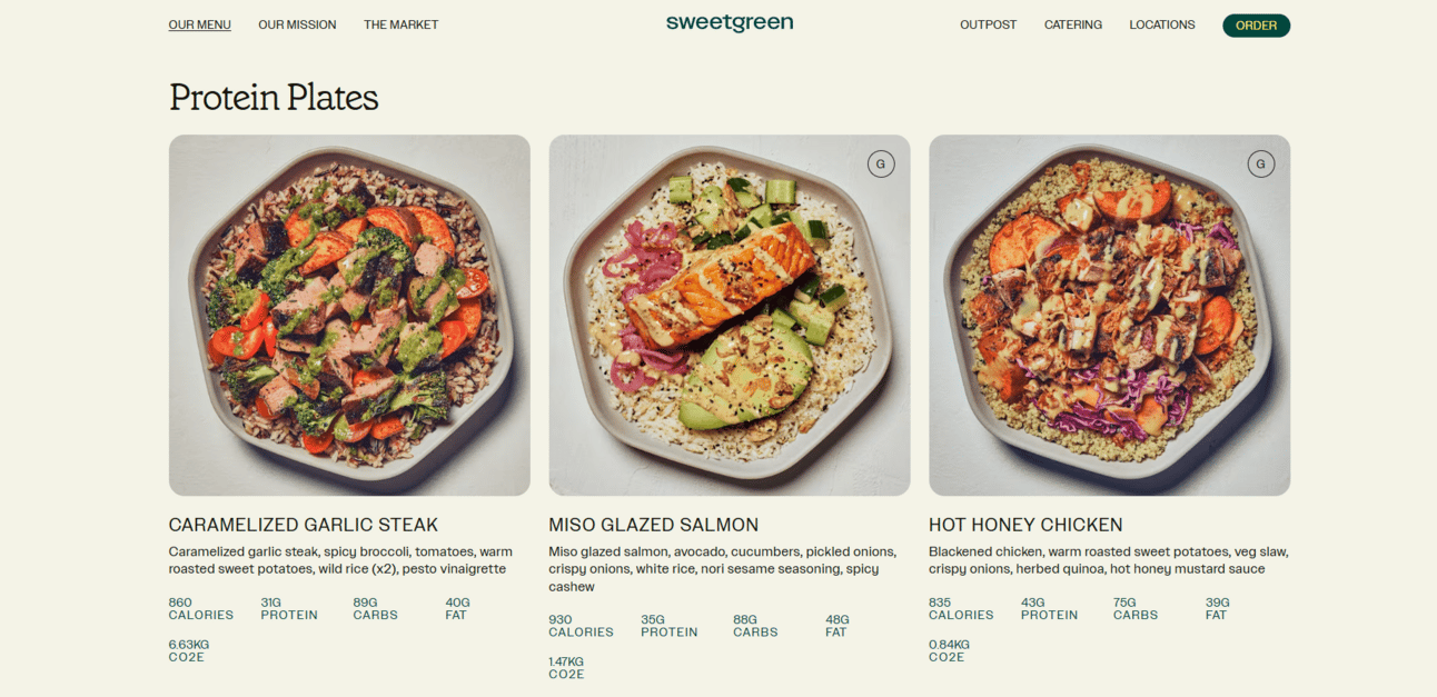 Take, for instance, the following screenshot of the Sweetgreen menu I took from their website: